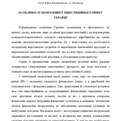 Особливості моніторингу інвестиційного ринку України