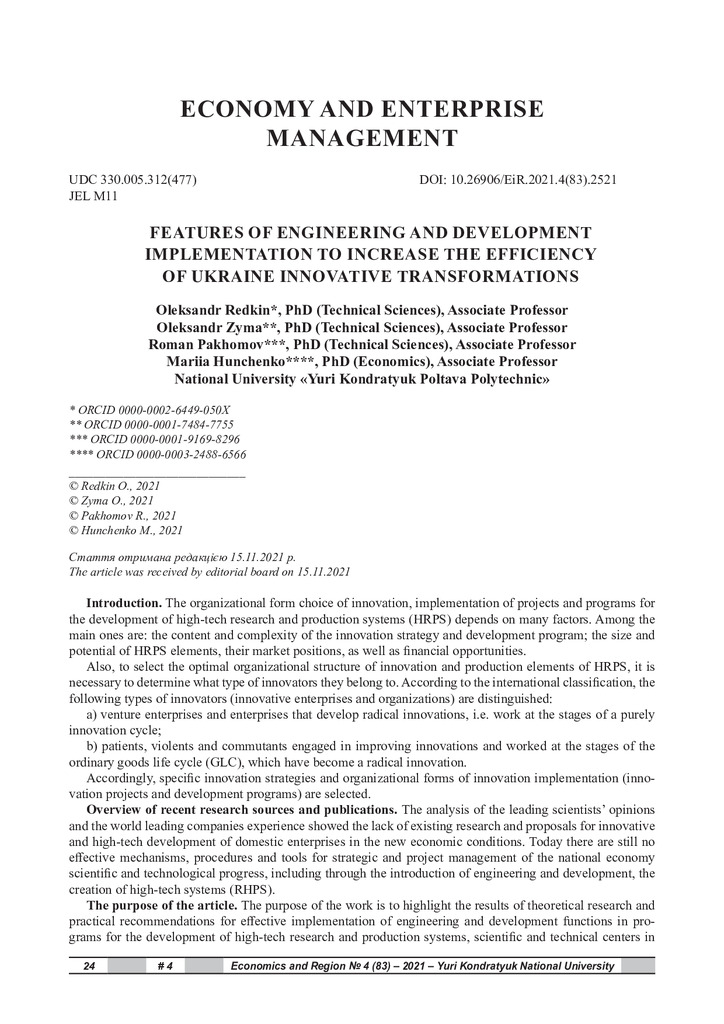 Особливості впровадження інжинірингу та девелопменту для підвищення ефективності інноваційних перетворень в Україні