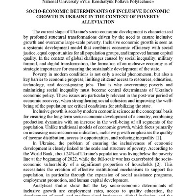 Inclusive Economic Growth in Ukraine: The Social Aspect