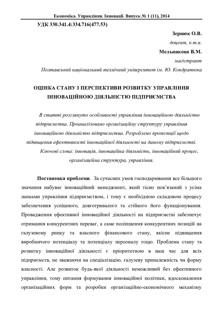 2018/12/14Оцінка стану і перспективи розвитку управління інноваційною діяльністю підприємства