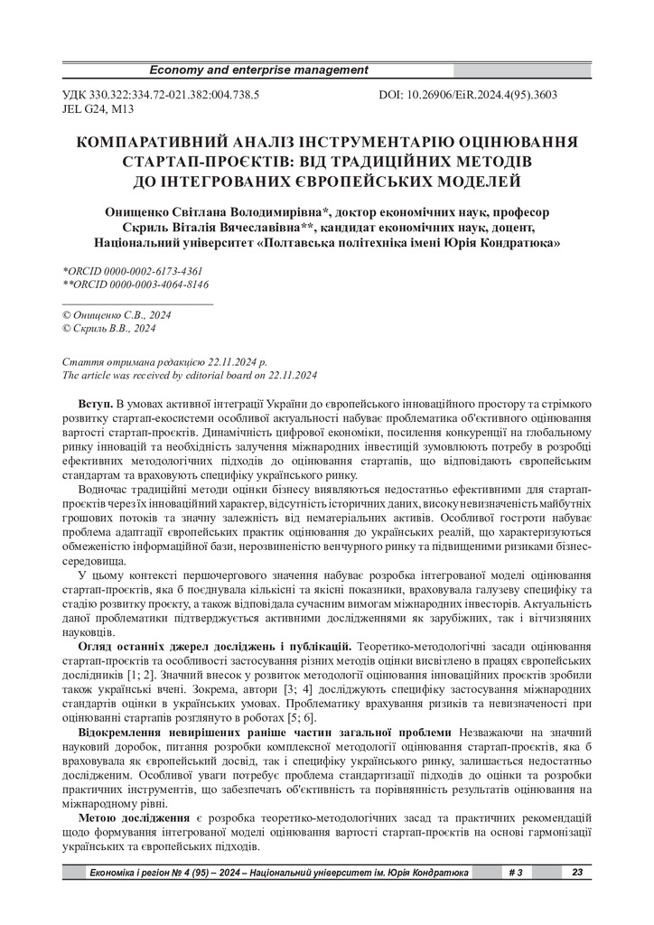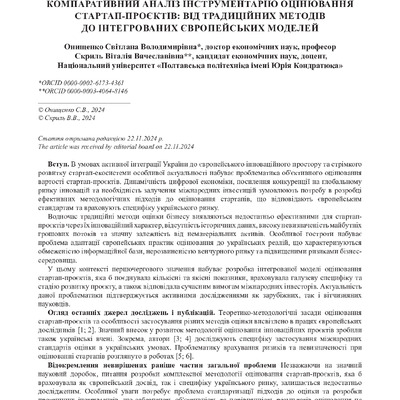 Компаративний аналіз інструментарію оцінювання стартап-проєктів: від традиційних методів до інтегрованих європейських моделей
