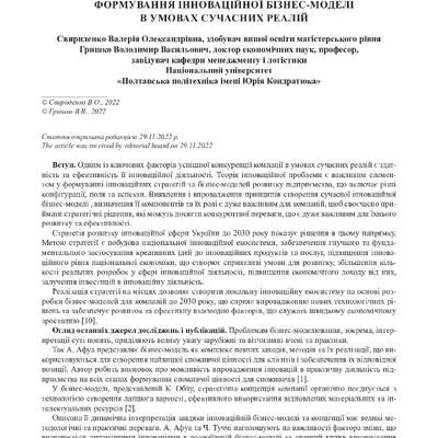 Стаття 2025/04/07Формування інноваційної бізнес-моделі в умовах сучасних реалій