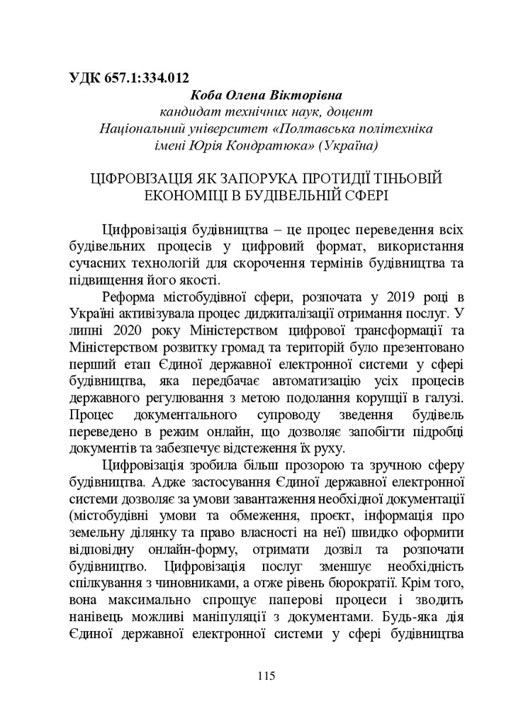 Цифровізація як запорука протидії тіньовій економіці в будівельній сфері