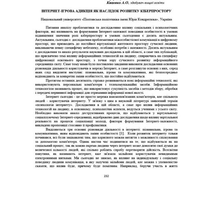 Стаття 2022/06/04Інтернет-ігрова адикція як наслідок розвитку кіберпростору
