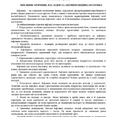 Стаття 2024/05/23Інфляція. причини, наслідки та антиінфляційна політика