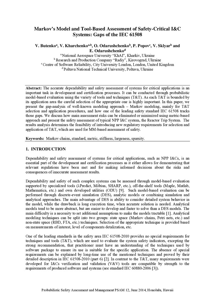 2022/08/30Markov’s Model and Tool-Based Assessment of Safety-Critical I&C Systems: Gaps of the IEC 61508