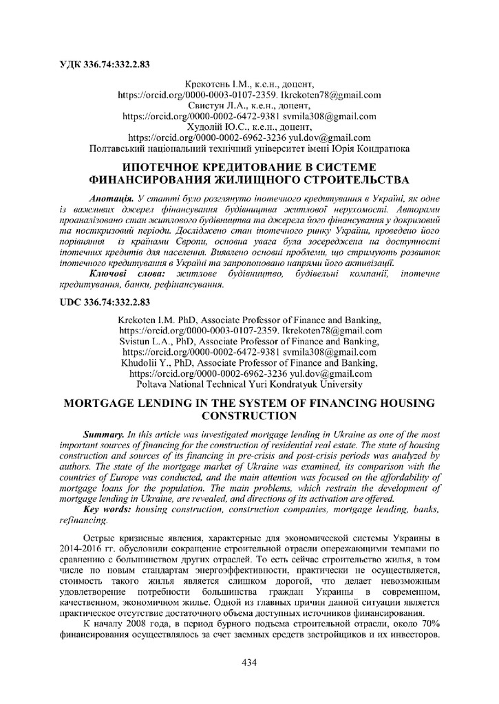 У статті було розглянуто іпотечного кредитування в Україні, як одне із важливих джерел фінансуван...