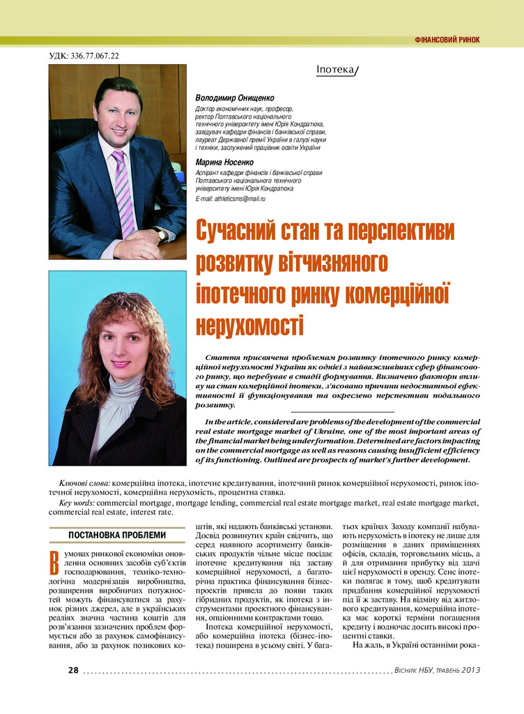 2017/07/06Сучасний стан та перспективи розвитку вітчизняного іпотечного ринку комерційної нерухомості