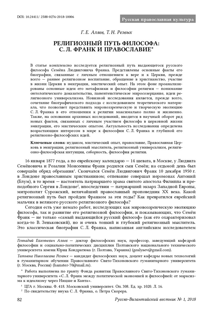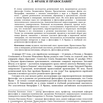 Религиозный путь философа: С. Л. Франк и православие