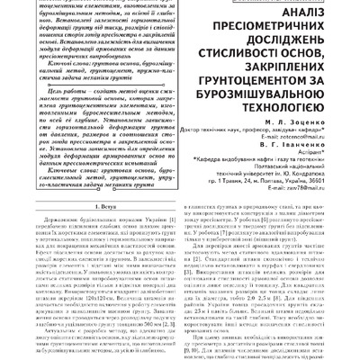 Аналіз пресіометричних досліджень стисливості основ, закріплених грунтоцементом за бурозмішувальною технологією