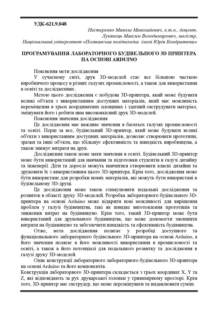Стаття 2023/12/21Програмування лабораторного будівельного 3D-принтера на основі Arduino
