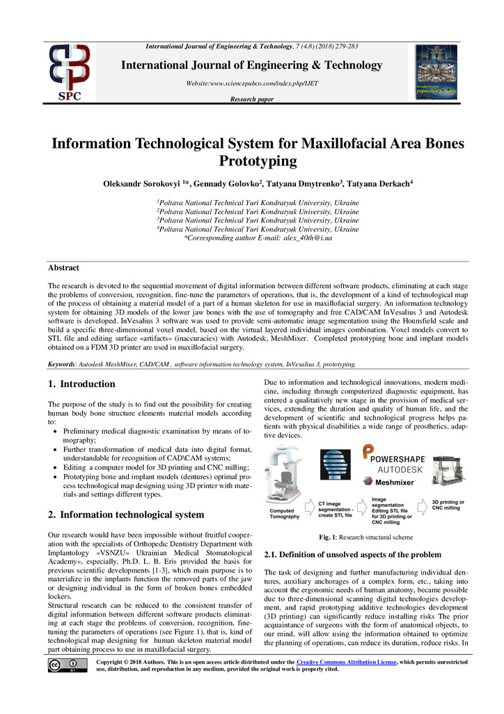 Information technological system for maxillofacial area bones prototyping