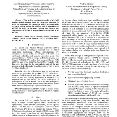 The article deals with convergent solutions "radio over an optics" on the basis of N-OF...