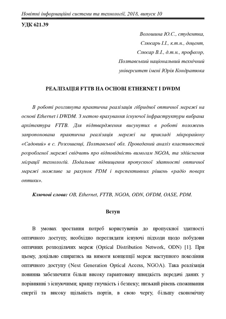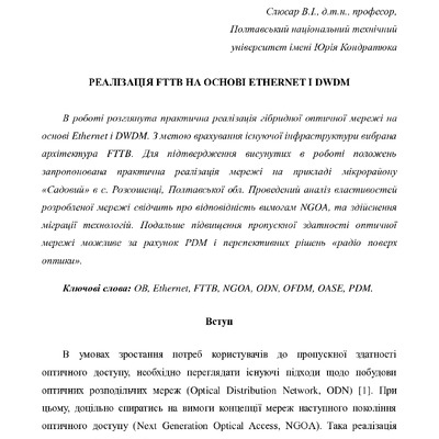 В роботі розглянута практична реалізація гібридної оптичної мережі на основі Ethernet і DWDM. З м...