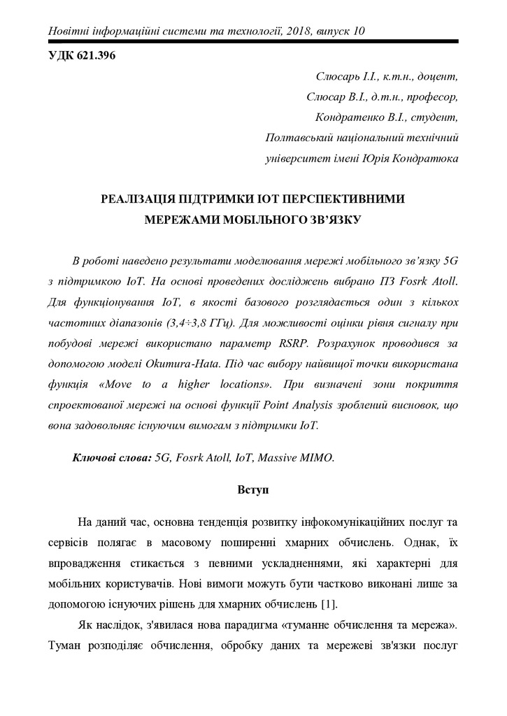 Реалізація підтримки IoT перспективними мережами мобільного зв’язку