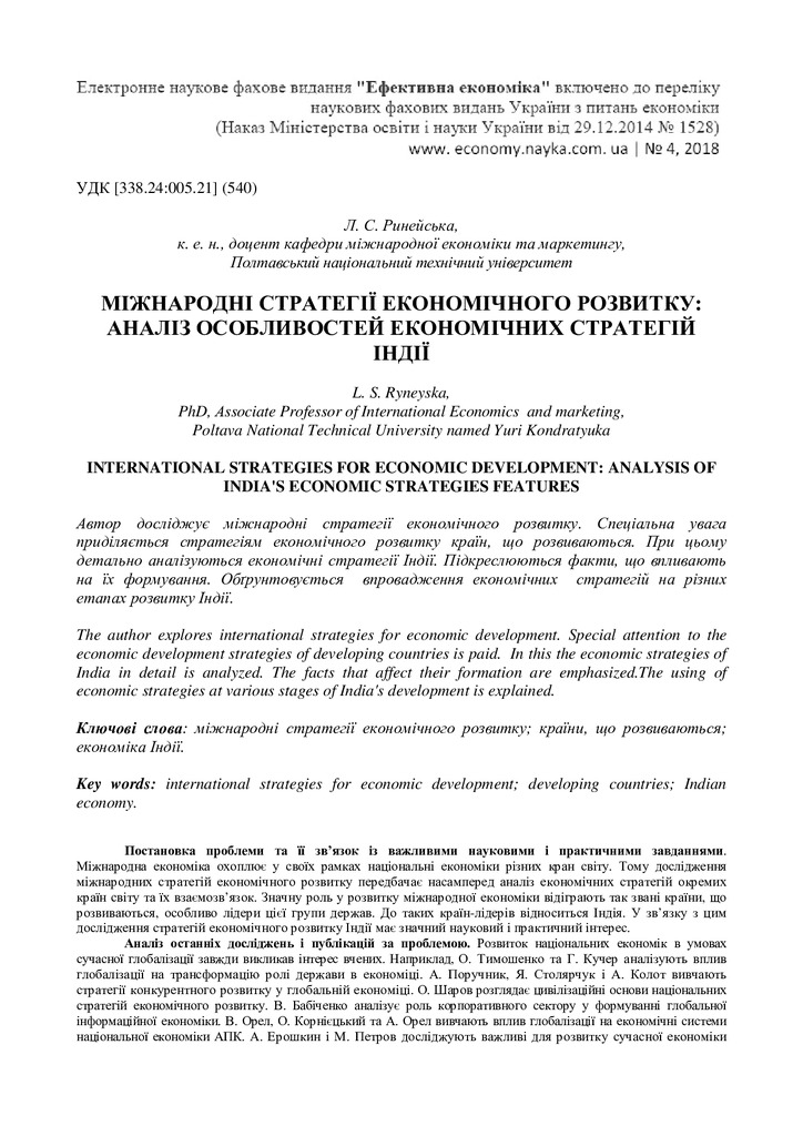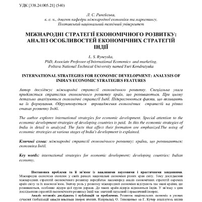 Міжнародні стратегії економічного розвитку: аналіз особливостей економічних стратегій Індії