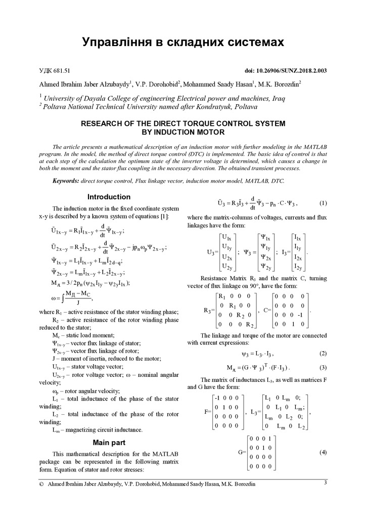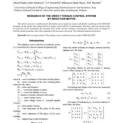 Стаття 2018/12/12Research of the direct torque control system by induction motor