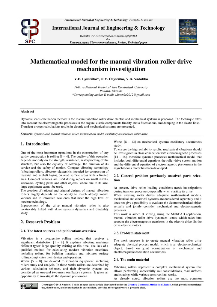 2018/12/11Mathematical Model for the Manual Vibration Roller Drive Mechanism Investigation