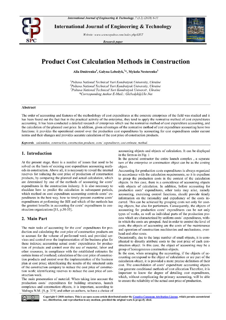 Стаття 2021/05/14Product Cost Calculation Methods in Construction