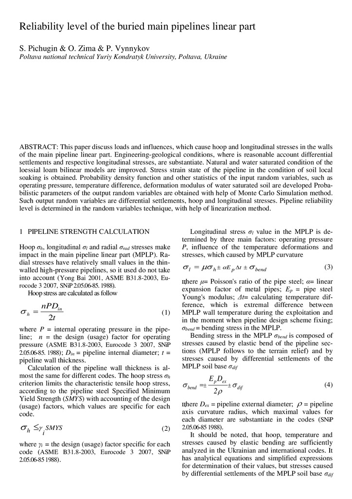 This paper discuss loads and influences, which cause hoop and longitudinal stresses in the walls of the main pipeline linear part. Engineering-geological conditions, where is reasonable account di...