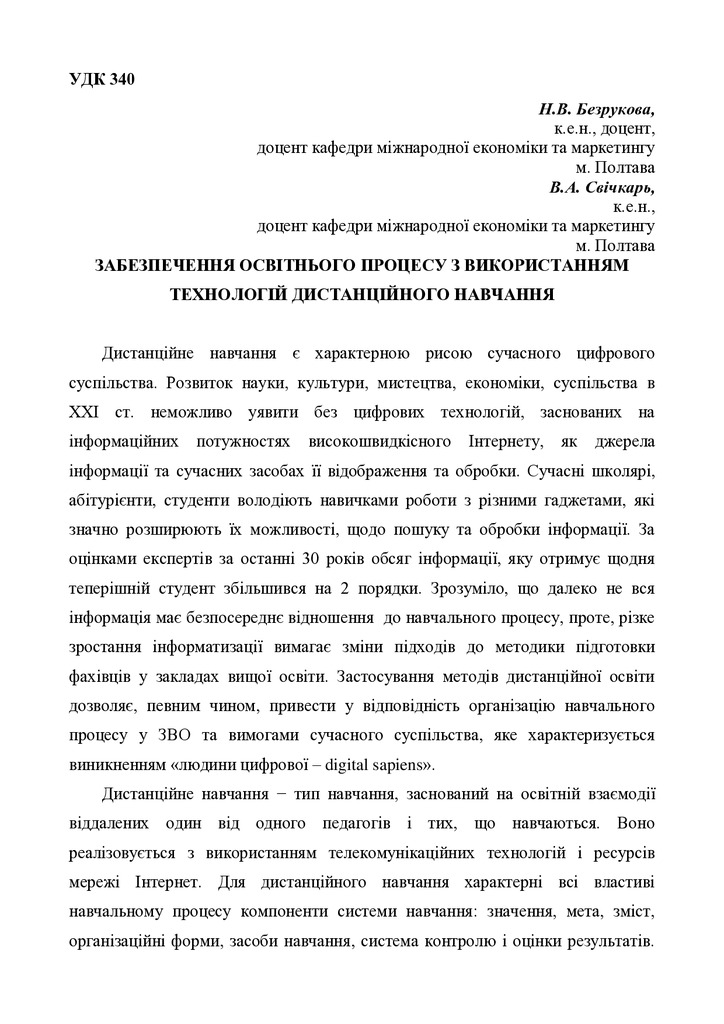 Стаття 2024/04/09Забезпечення освітнього процесу з використанням технологій дистанційного навчання