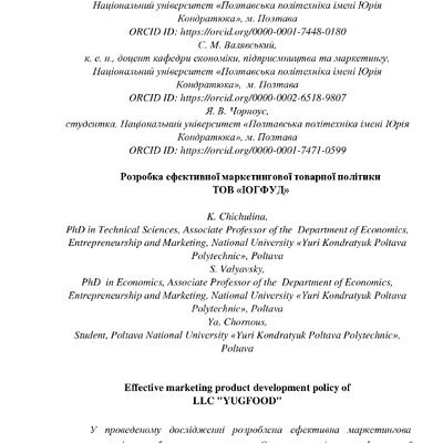 2023/07/12Розробка ефективної маркетингової товарної політики ТОВ «ЮГФУД»