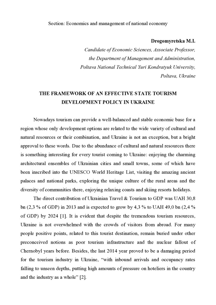The framework of an effective state tourism development policy in Ukraine