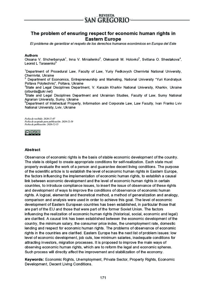The problem of ensuring respect for economic human rights in Eastern Europe