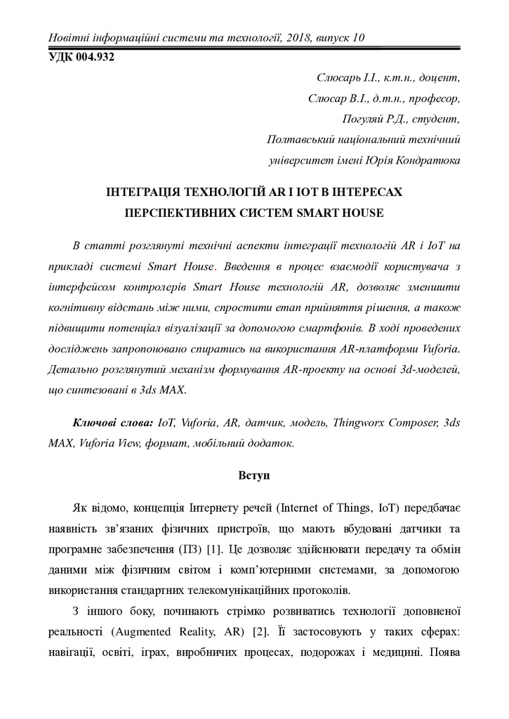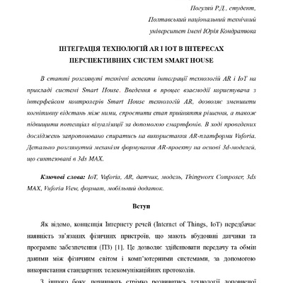 Інтеграція технологій AR і IoT в інтересах перспективних систем Smart House.