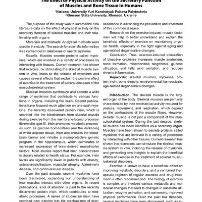The purpose of the study was to summarize new literature data on the effect of physical activity on the secretory function of skeletal muscles and their relationship with organs. Analytical methods...