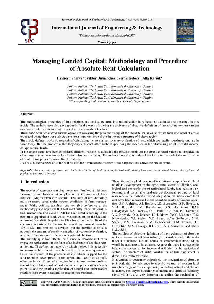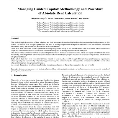 Стаття 2020/07/19Мanaging Landed Capital: Methodology and Procedure of Absolute Rent Calculation