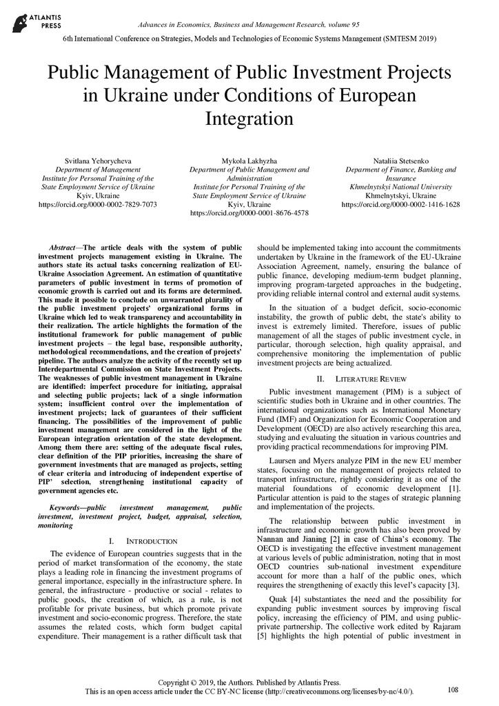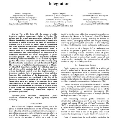 Public Management of Public Investment Projects in Ukraine under Conditions of European Integration