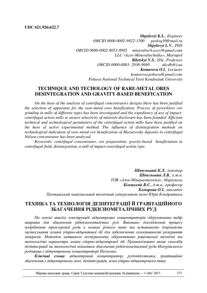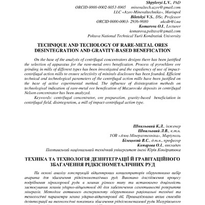 На основі аналізу конструкцій відцентрових концентраторів обґрунтовано вибір апарата для збагачення рідкіснометалічних руд. Виконано дослідження процесу подрібнення пірохлорової руди в млинах різно...