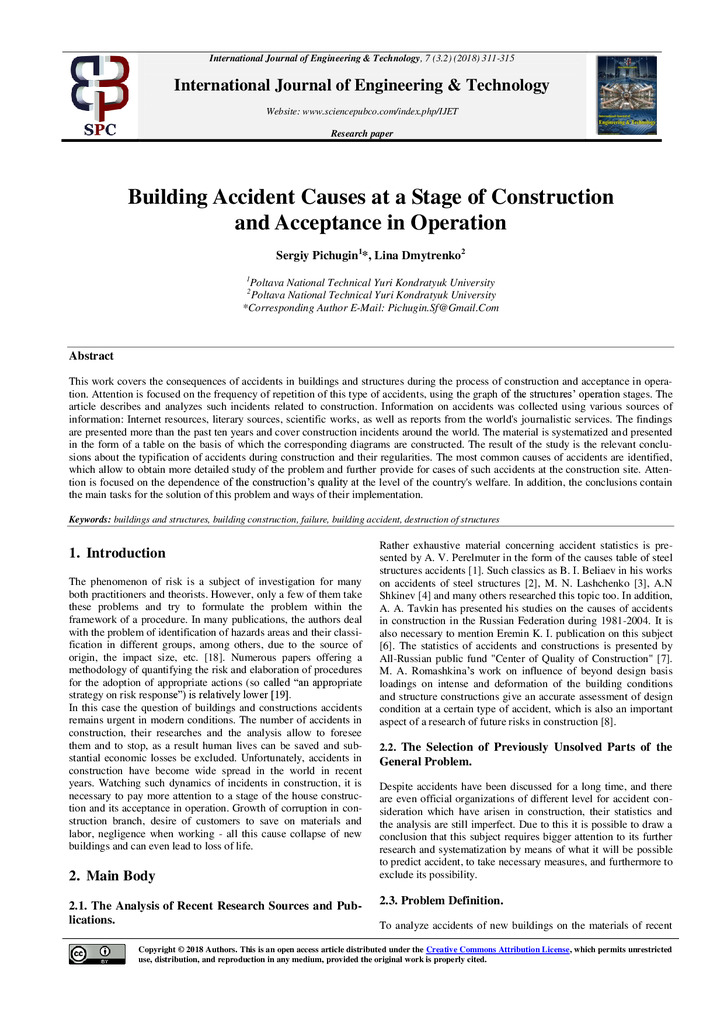 2018/11/08Building Accident Causes at a Stage of Construction and Acceptance in Operation