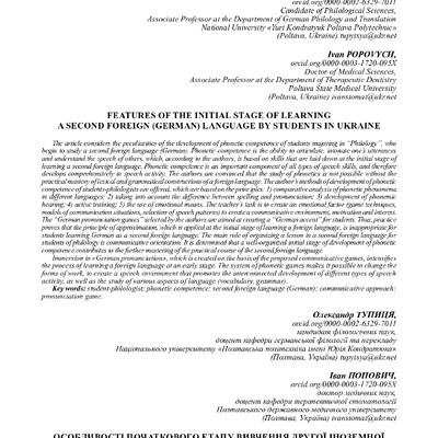 Стаття 2023/02/15Features of the initial stage of learning a second foreign language by university students