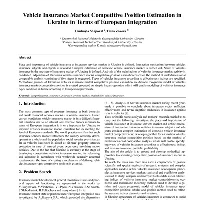 2019/06/24Vehicle insurance market competitive position estimation in Ukraine in terms of European integration