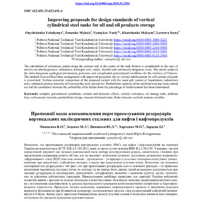Стаття 2019/02/06Design peculiarities of oil storage tanks in complex geotechnical conditions at seismic effects