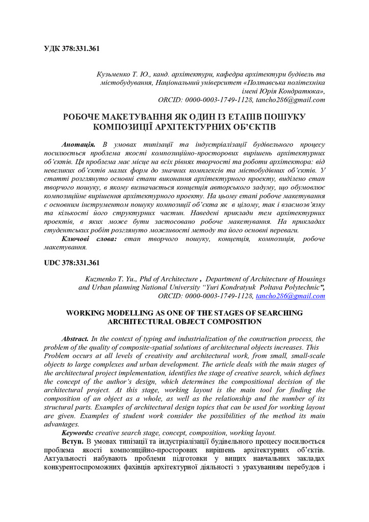 Стаття 2020/06/02Робоче макетування як один із етапів пошуку композиції архітектурних об’єктів