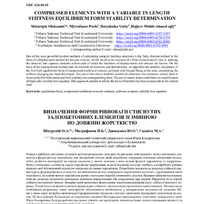 Compressed elements with a variable in length stiffness equilibrium form stability determination