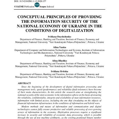 Conceptual principles of providing the information security of the national economy of Ukraine in the conditions of digitalization