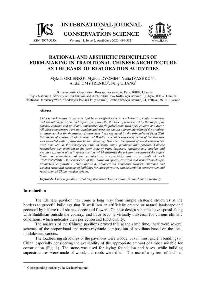 Стаття 2020/09/28Rational And Aesthetic Principles of Form-Making in Traditional Chinese Architecture as the Basis of Restoration Activities