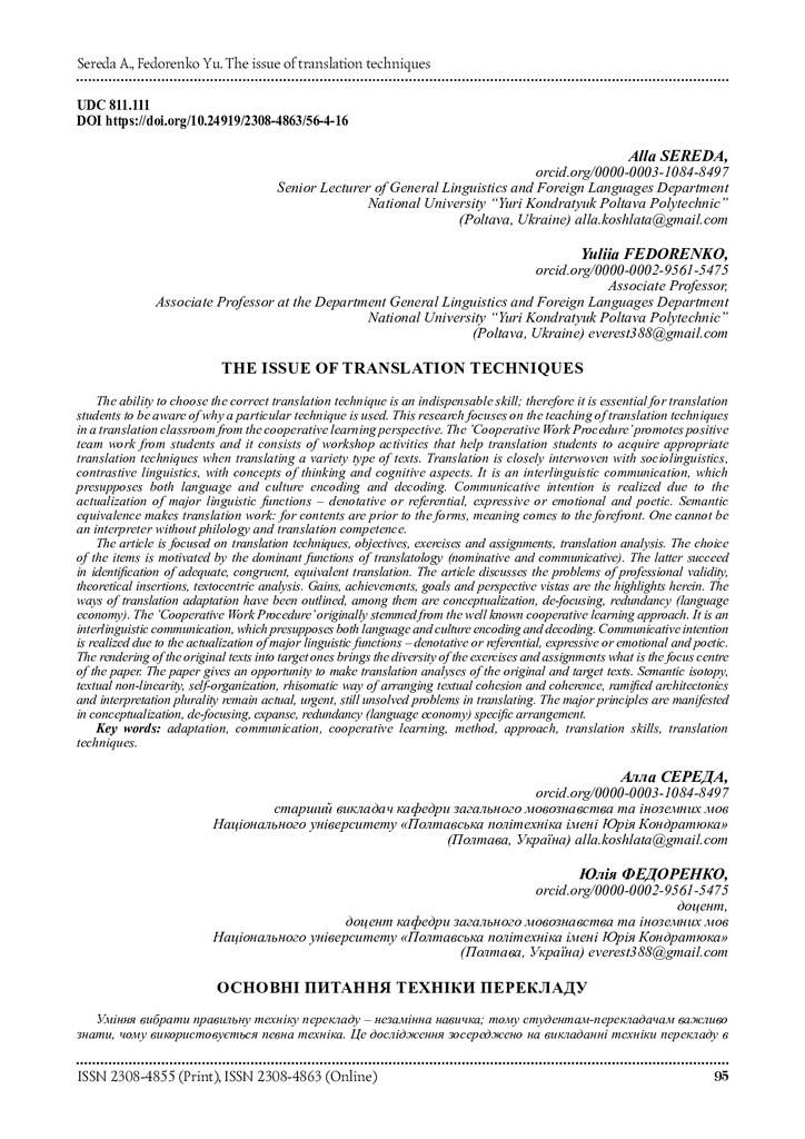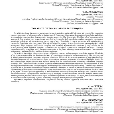 Стаття 2023/08/11The issue of translation techniques