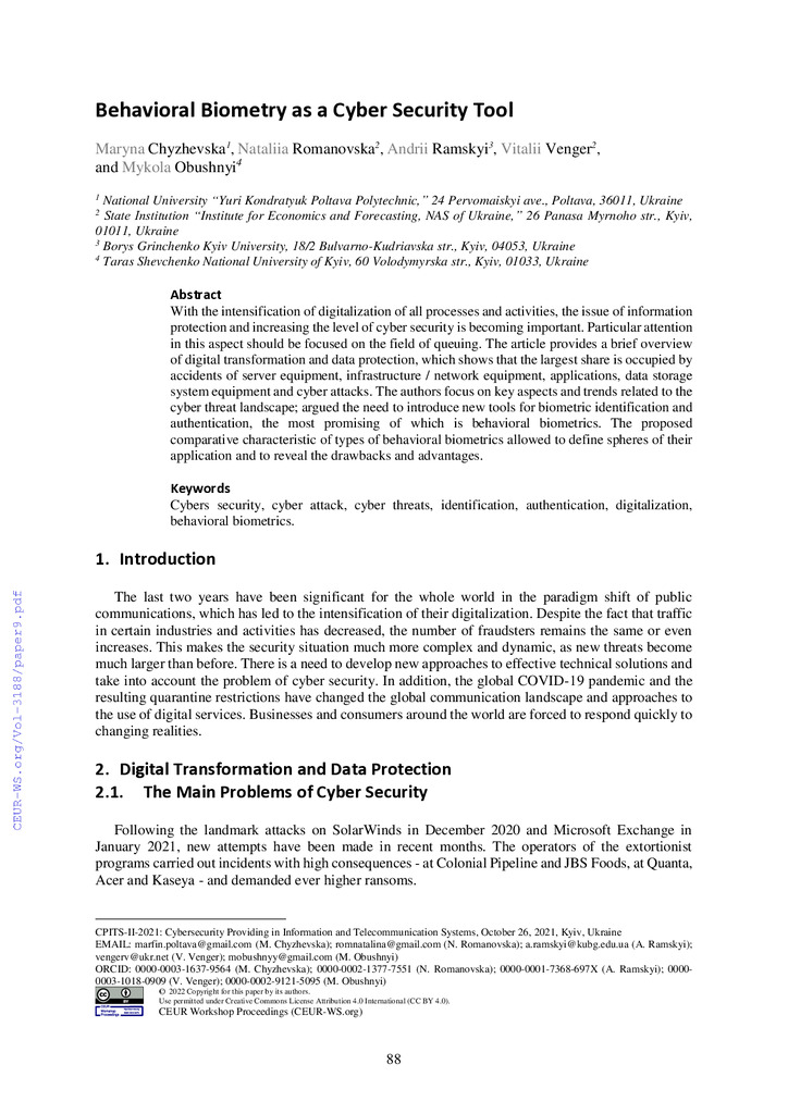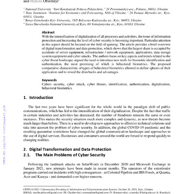 With the intensification of digitalization of all processes and activities, the issue of informat...