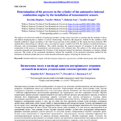 Determination of the pressure in the cylinder of the automotive internal combustion engine by the installation of tensommetric sensors