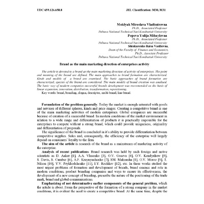 The article is devoted to a brand as the main marketing direction of activity of enterprises. The...