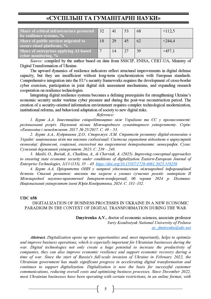 Digitalization of business processes in Ukraine in a new economic paradigm in the context of digital transformation during the war