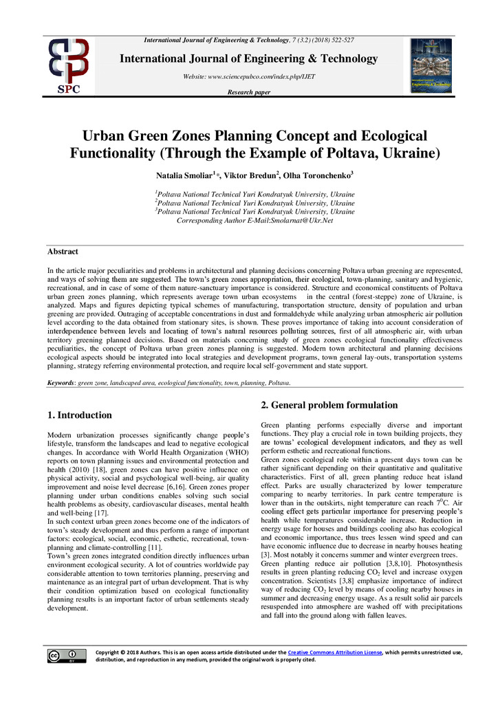 Urban Green Zones Planning Concept and Ecological Functionality (Through the Example of Poltava, Ukraine)