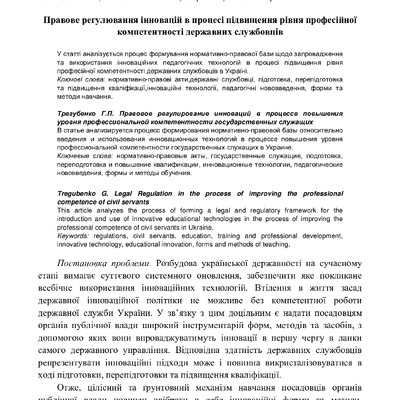 Правове регулювання інновацій в процесі підвищення рівня професійної компетентності державних службовців.