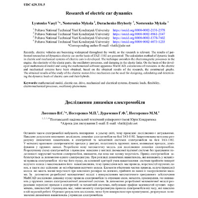 Research of electric car dynamics