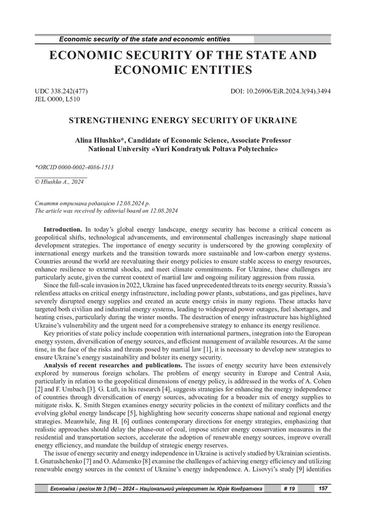 As part of the conducted research, the current situation in Ukraine regarding energy security was analyzed, revealing several critical factors that adversely affect the country's energy independenc...